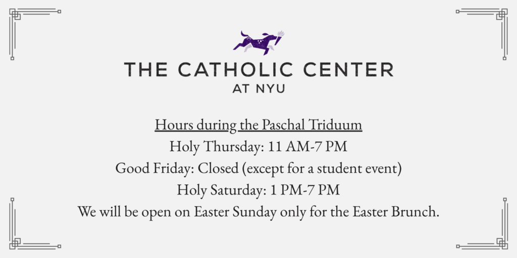 The Catholic Center at NYU is the dedicated hub for Catholic university life in the heart of the city. We offer a refined space and intentional ministry for serious students, helping you pursue your highest academic and professional ambitions while deepening your relationship with Jesus Christ. We connect faith, career, and community to ensure your success is built on freedom and truth.